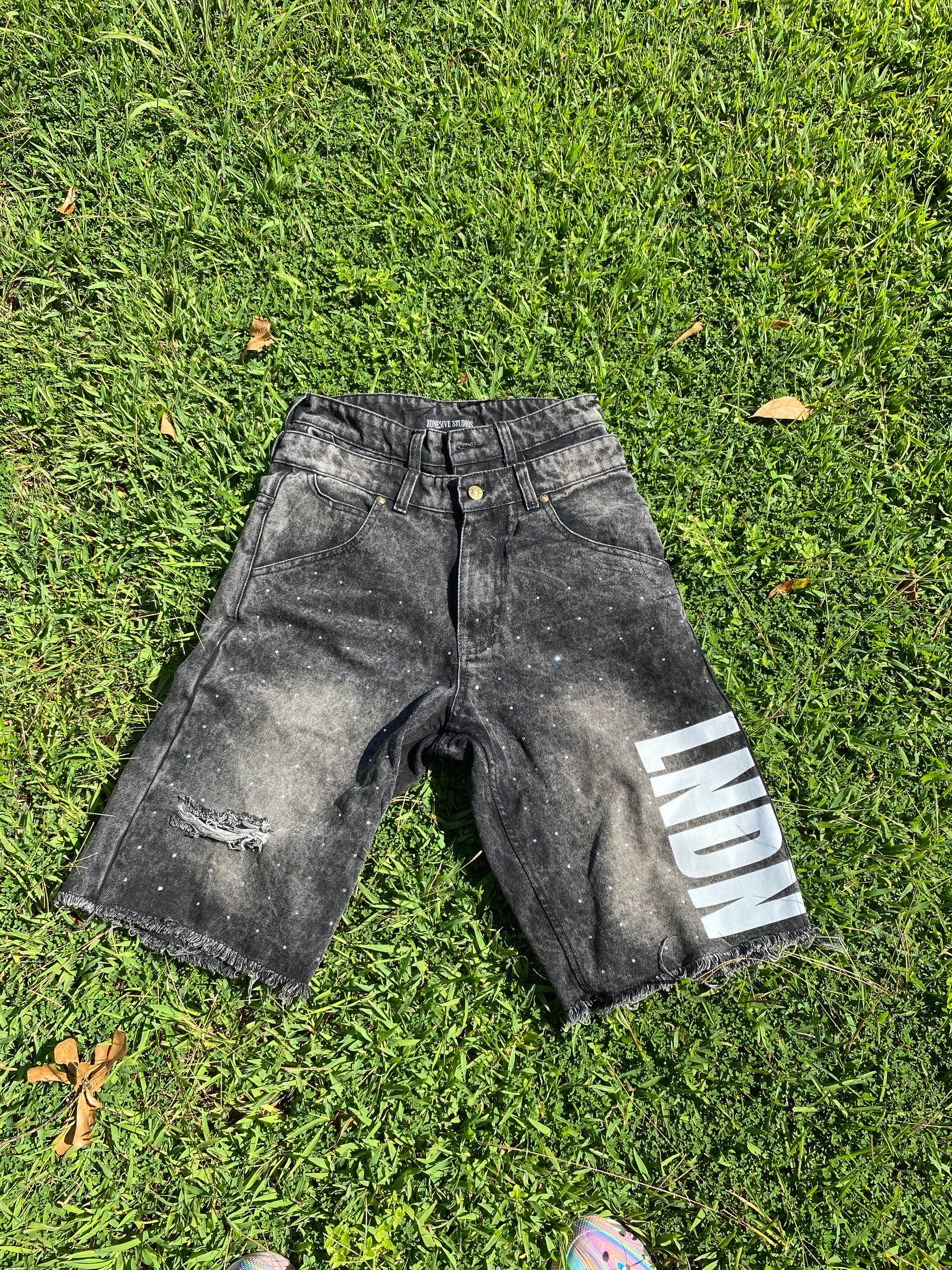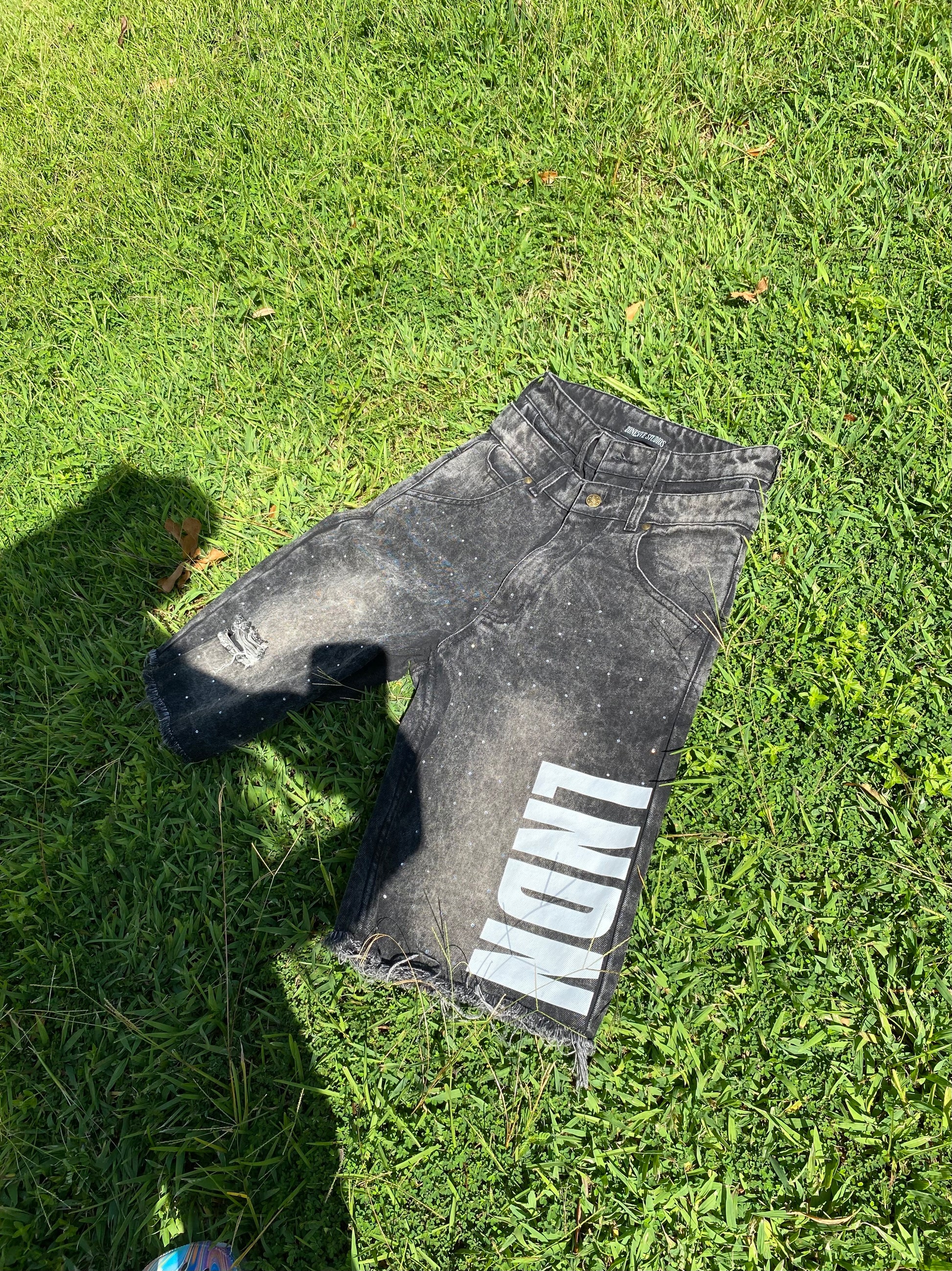 “LNDN” RHINESTONE JORTS